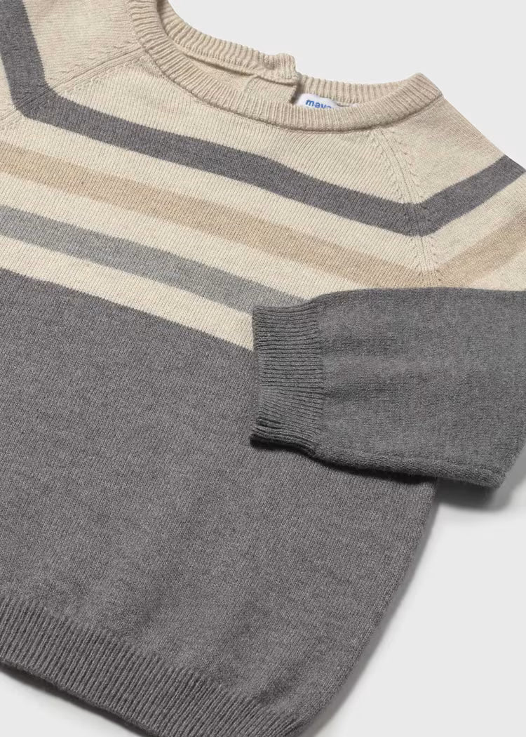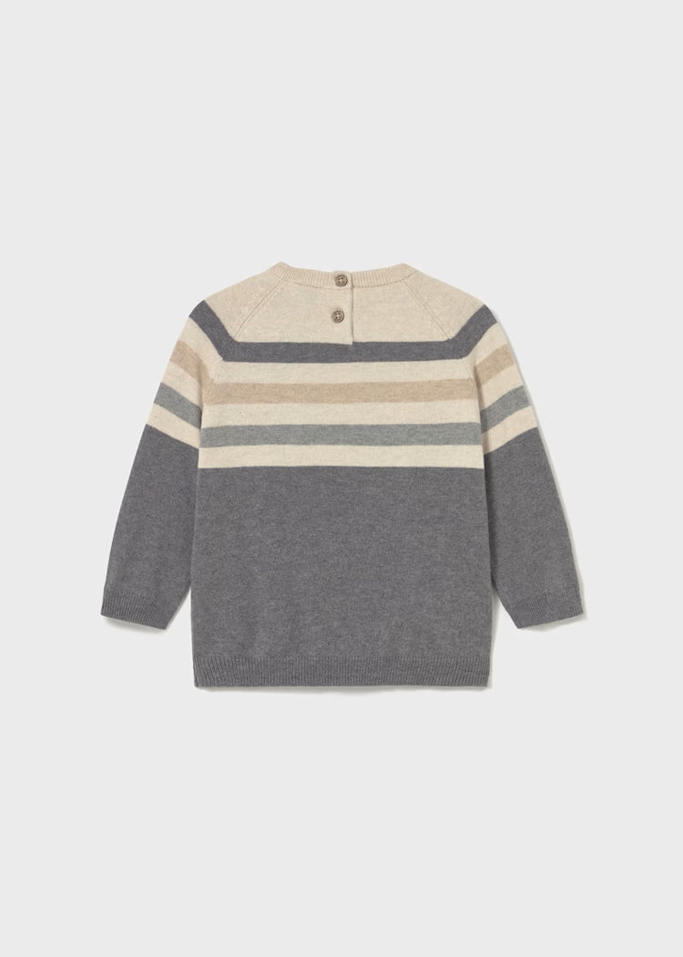 Contiene poliamida reciclada. Jersey de manga larga para bebé. Cuello redondo. Cierre con botones en el cuello para facilitar el ajuste. Motivo de rayas.