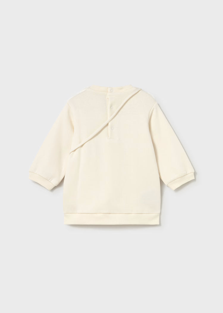 Vestido de manga larga para bebé. Cuello redondo. Cierre con botones a presión en la parte posterior. Modelo con forro interior.