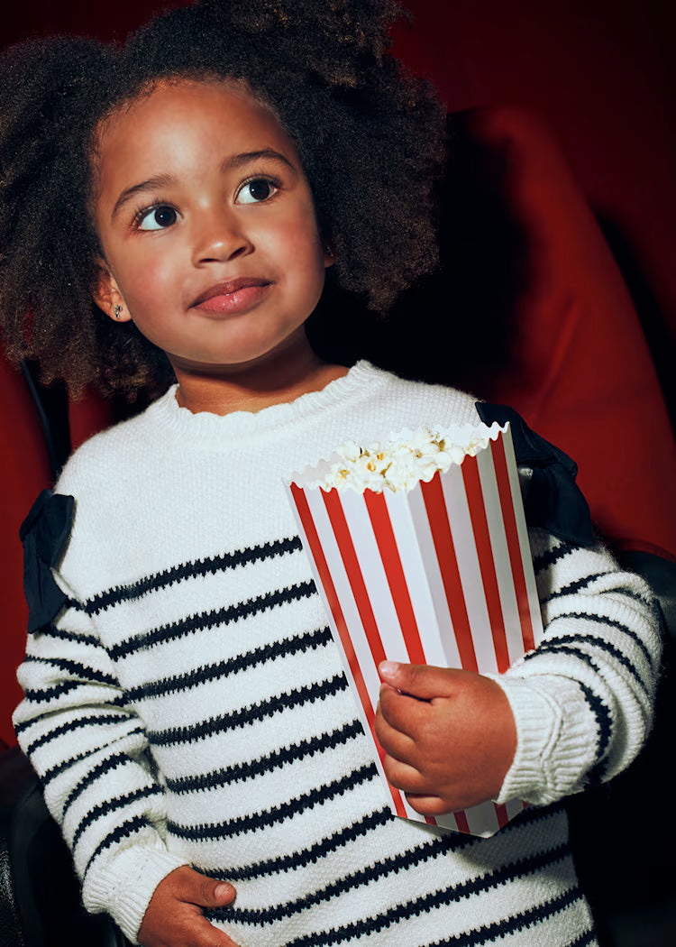 Contiene poliéster reciclado. Vestido de manga larga para niña. Cuello con ondas. Cómodo tejido de punto. Elementos de adorno: apliques de lazos. Motivo de rayas.
